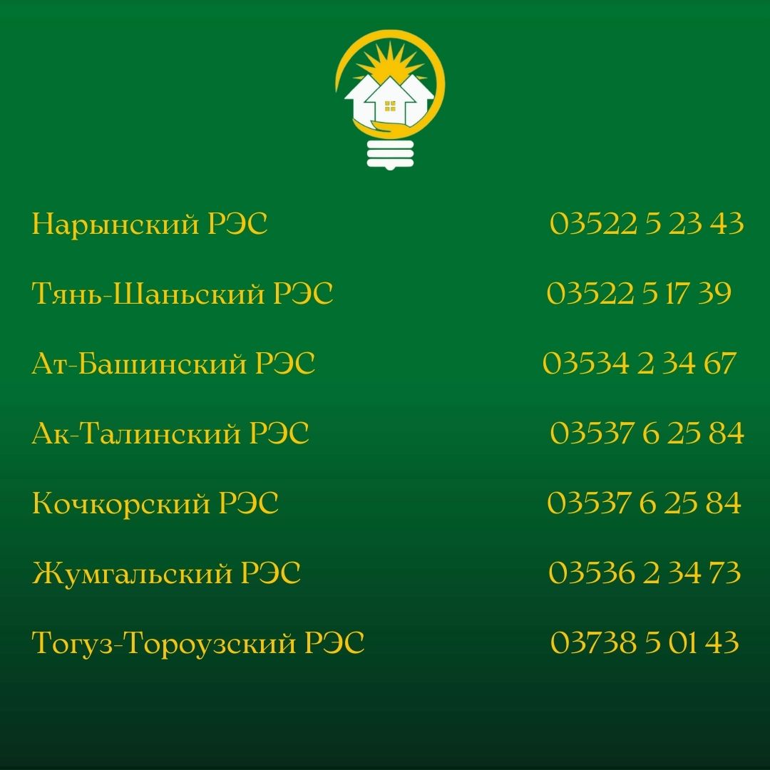 По данным компании, жители Нарынской области могут звонить в районные РЭС: