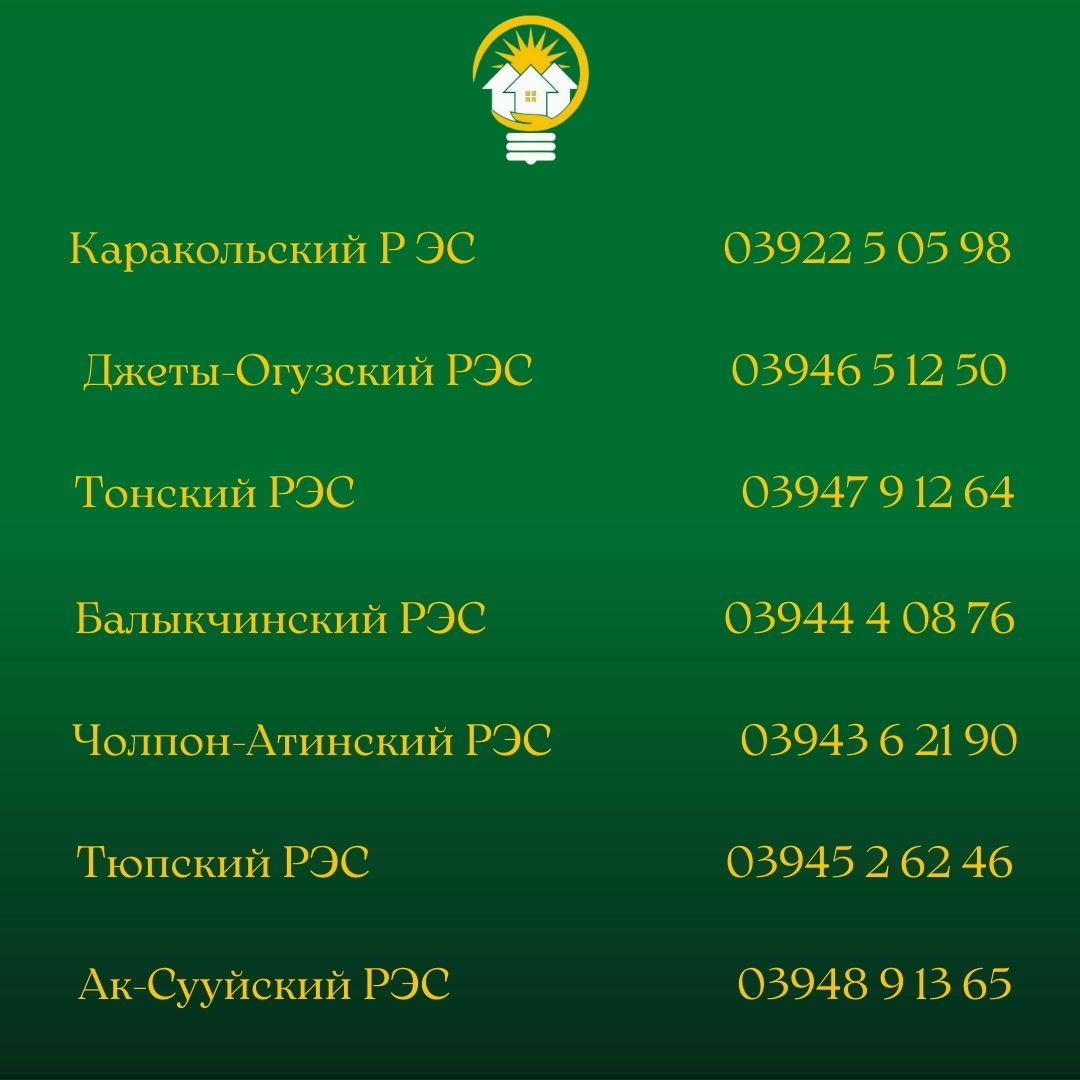 Жители Иссык-Кульской области также могут звонить в районные РЭС: