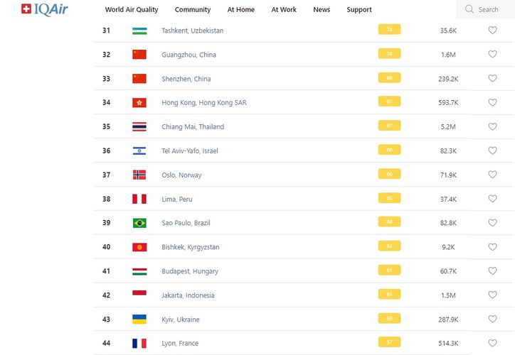 В рейтинге крупнейших городов мира по качеству воздуха World Air Quality Бишкек опустился на 40-е место.