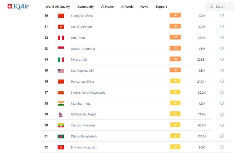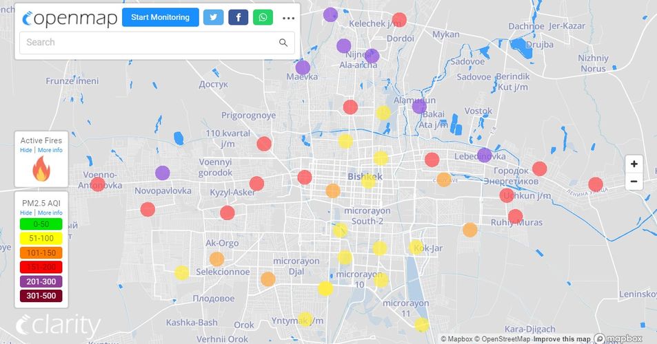 В рейтинге крупнейших городов мира по качеству воздуха World Air Quality Бишкек поднялся на 22-е место.