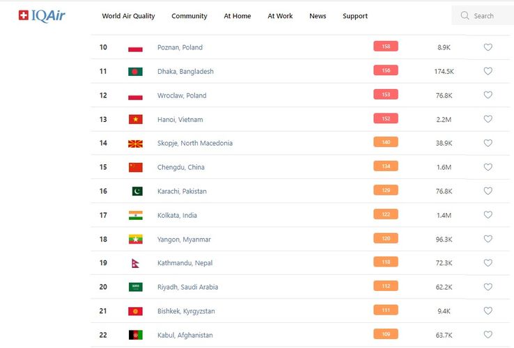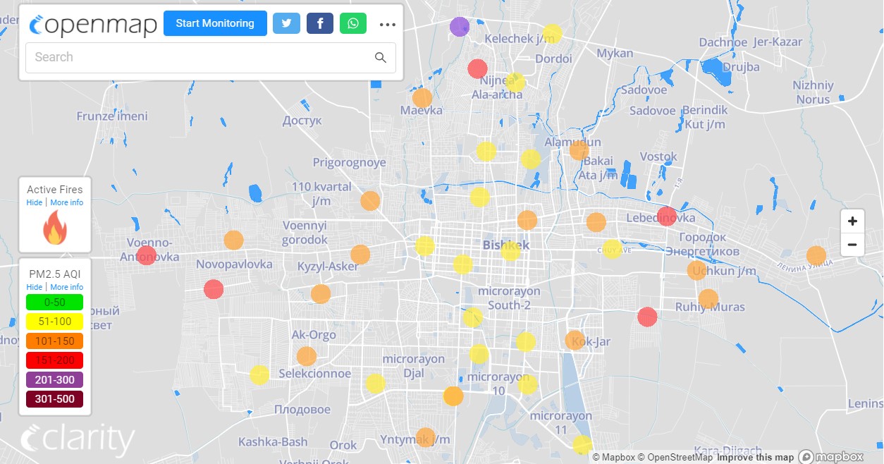 В рейтинге крупнейших городов мира по качеству воздуха World Air Quality Бишкек опустился на 21-е место.