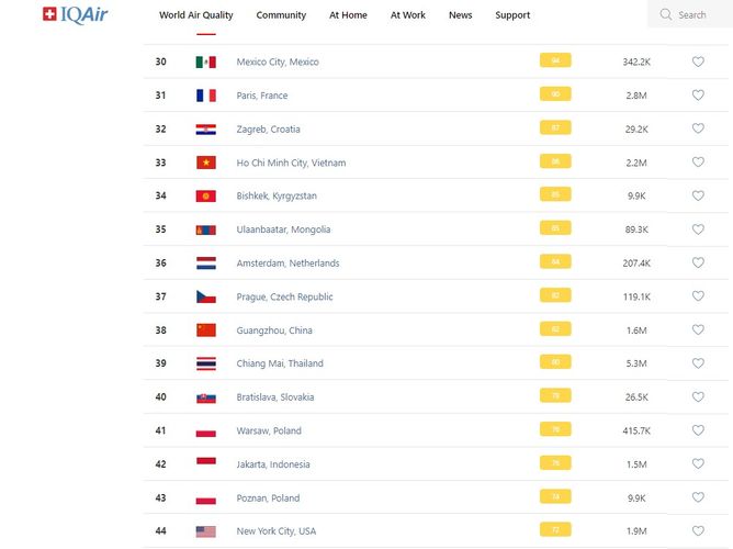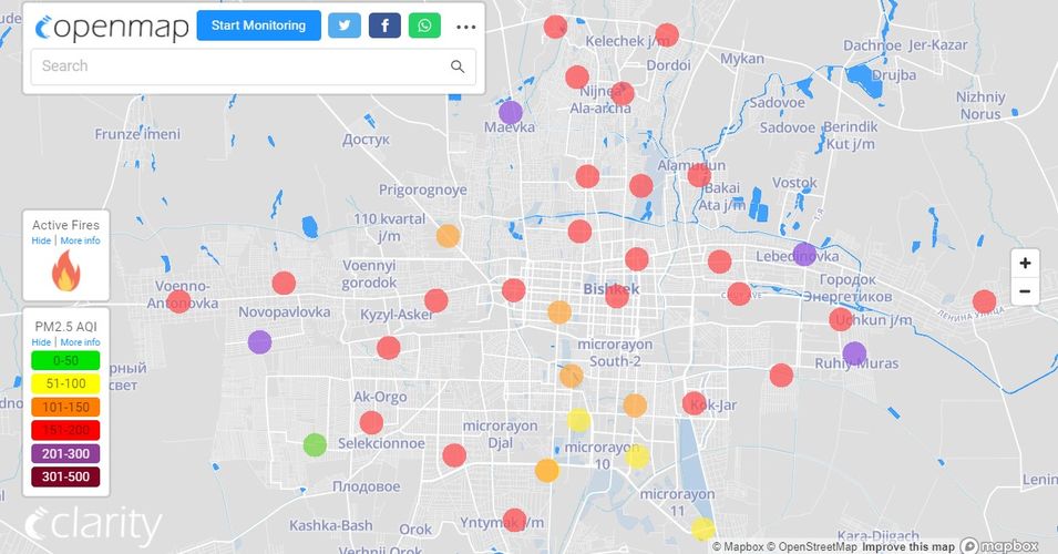 В рейтинге крупнейших городов мира по качеству воздуха World Air Quality Бишкек поднялся на 34-е место.