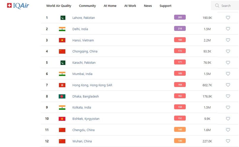 В 18.00 статус города отмечен как «нездоровый». Индекс качества воздуха, по данным сайта, составляет 152 (AQI).