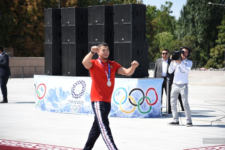 На прошедшей Олимпиде в Токио кыргызстанцы завоевали три медали — бронзовую Мээрим Жуманазарова, серебряные — Акжол Махмудов и Айсулуу Тыныбекова. Их чествовали на площади Ала-Тоо.