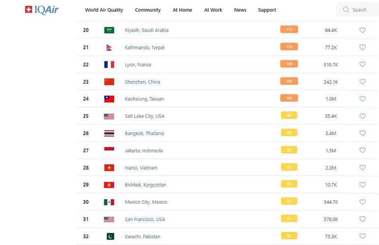 В 18.00 статус города отмечен как «умеренный». Индекс качества воздуха, по данным сайта, составляет 86 (AQI).