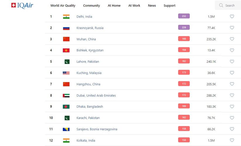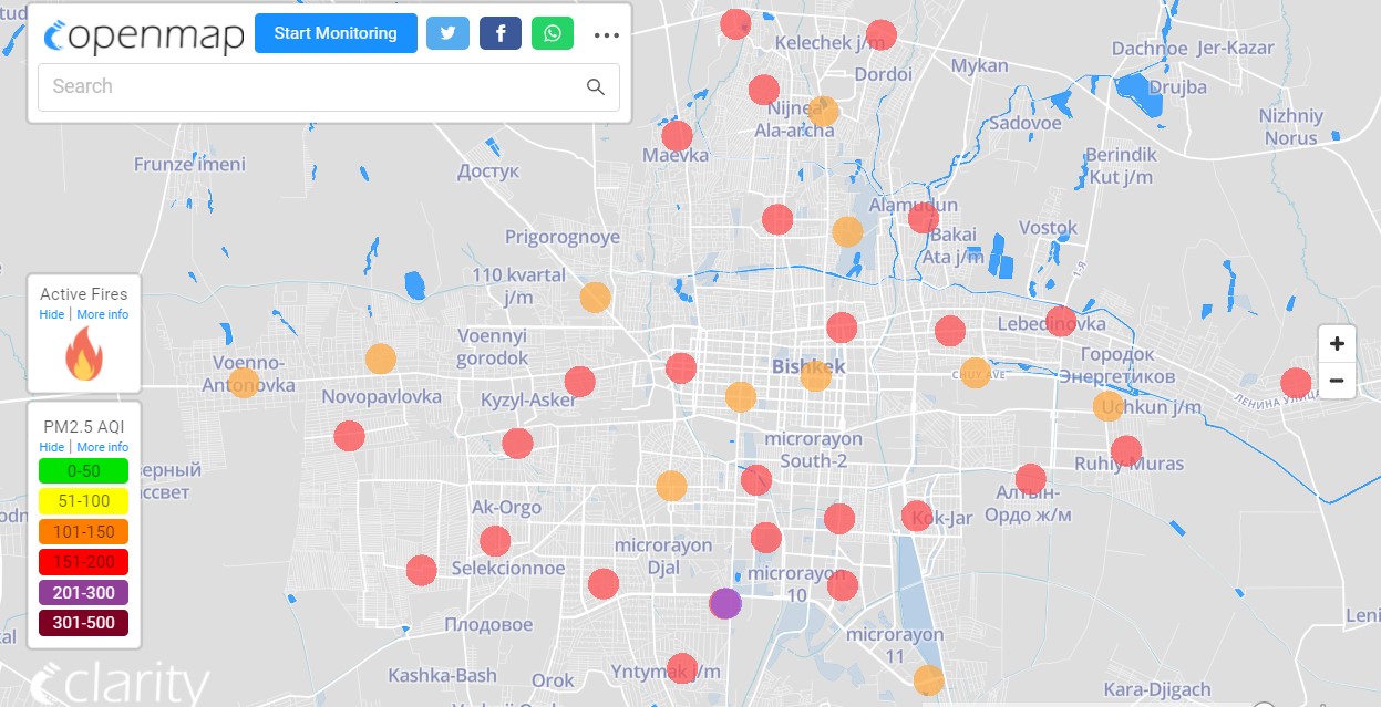 В рейтинге крупнейших городов мира по качеству воздуха World Air Quality Бишкек поднялся на 4-е место.