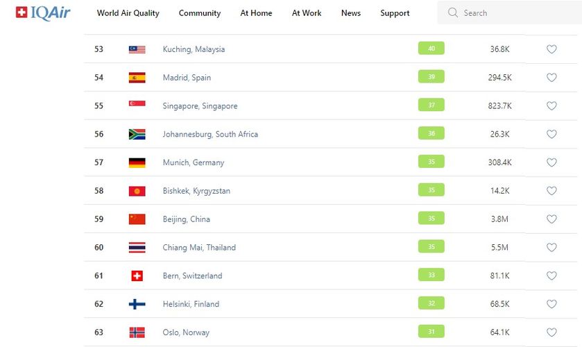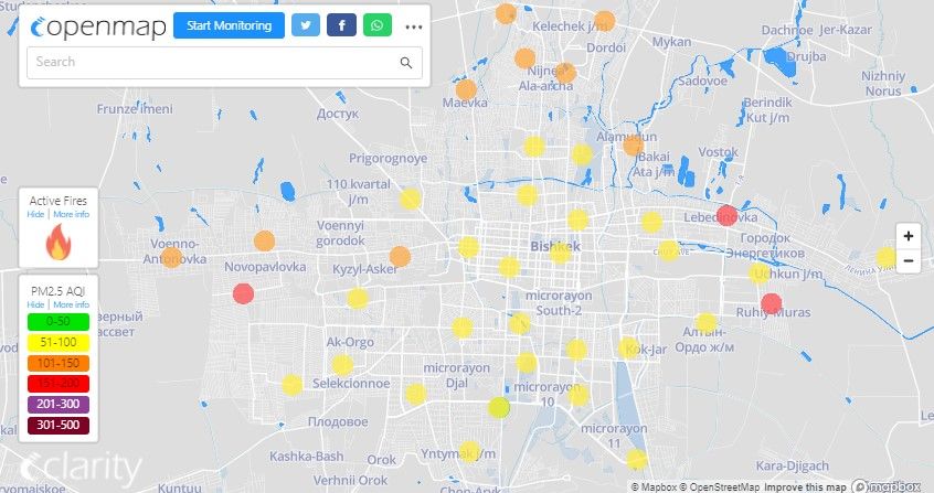 В рейтинге крупнейших городов мира по качеству воздуха World Air Quality Бишкек опустился на 58-е место.