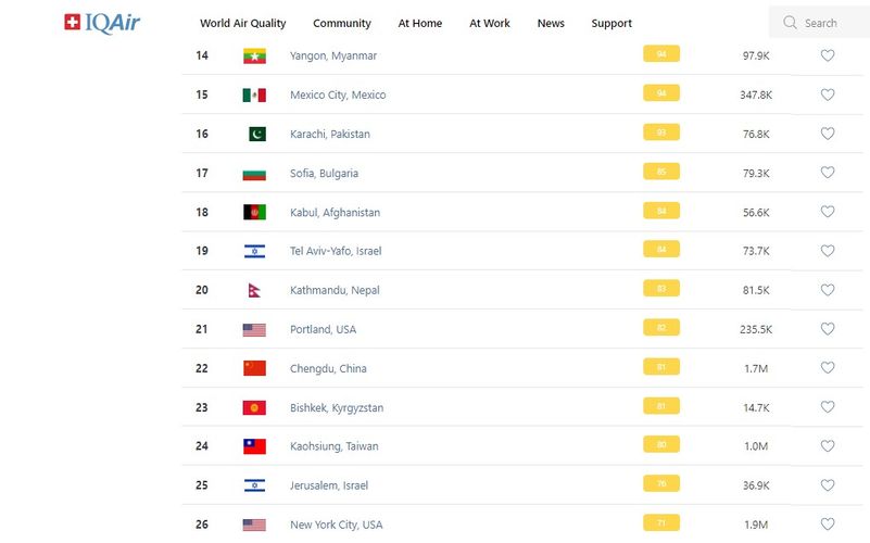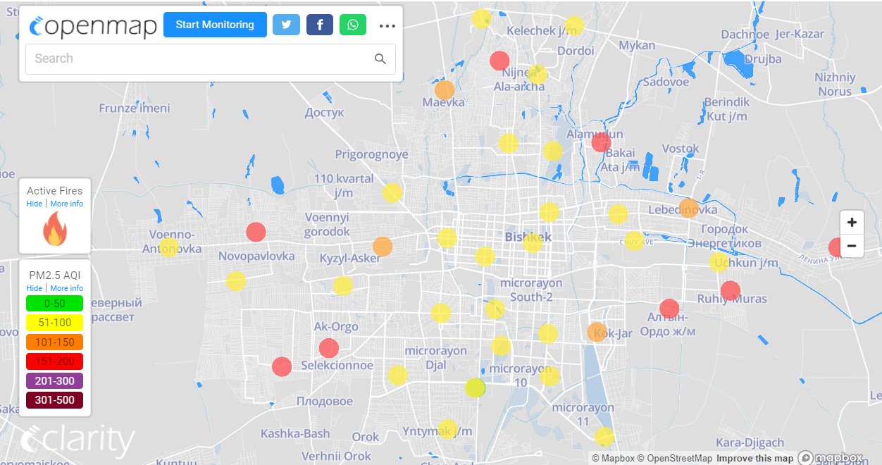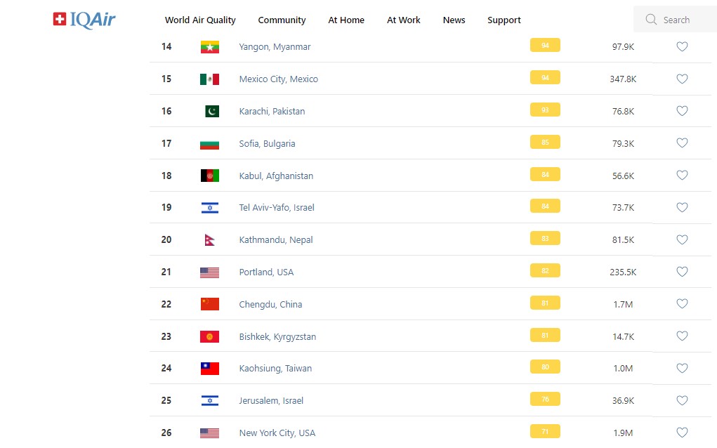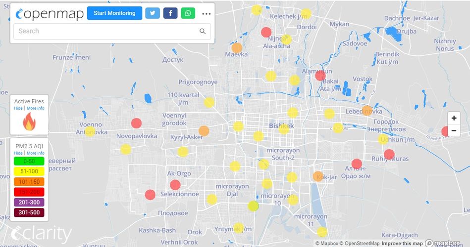 В рейтинге крупнейших городов мира по качеству воздуха World Air Quality Бишкек поднялся на 23-е место.