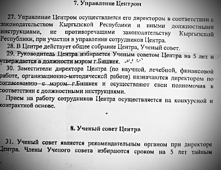 «Согласно положению БНИЦТиО, его руководитель избирается Ученым советом центра на пять лет и утверждается в должности мэром. Соответственно, и увольнение должно осуществляться градоначальником по предложению Ученого совета», — уточняет Замир Жоошев.