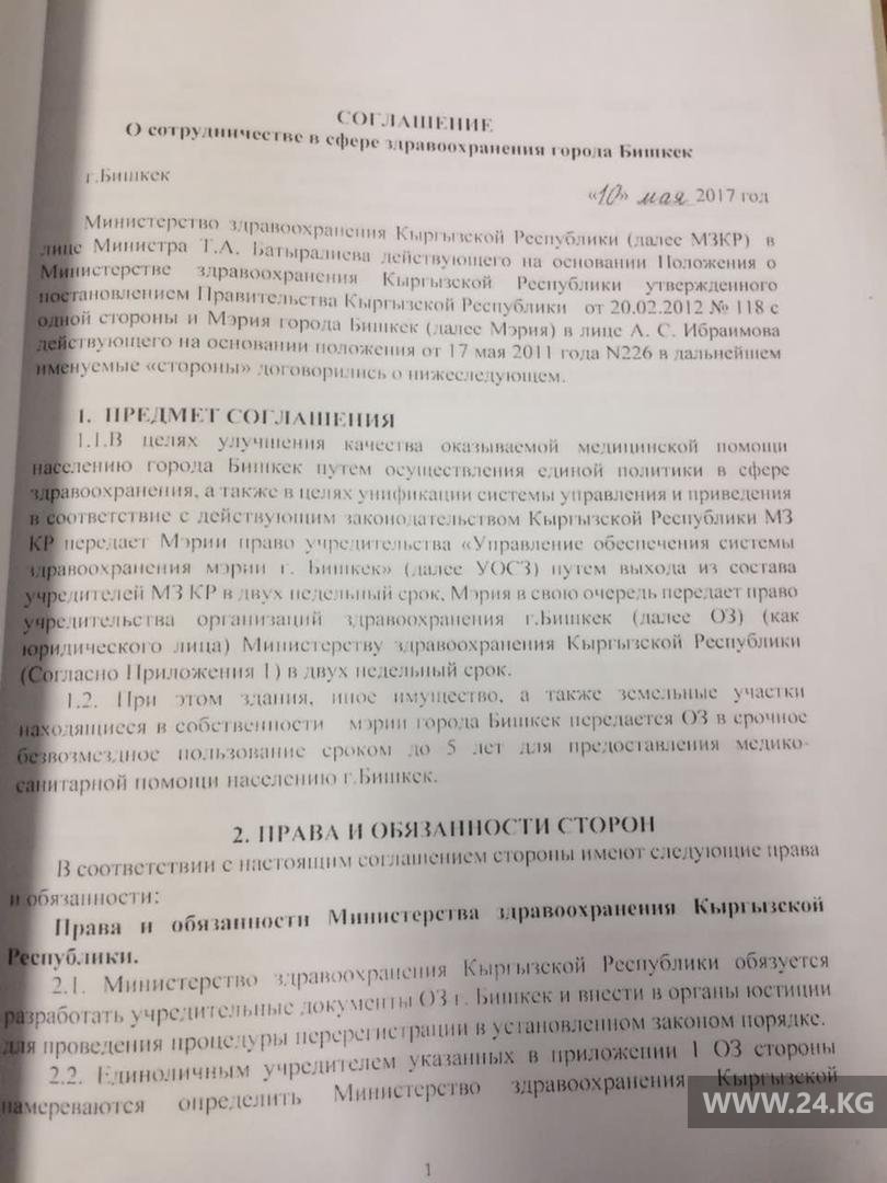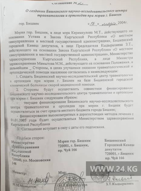 В Бишкекском городском кенеше 24.kg также сообщили, что к ним поступило обращение от Министерства здравоохранения о рассмотрении вопроса о выходе из состава учредителей БНИЦТиО при мэрии.
