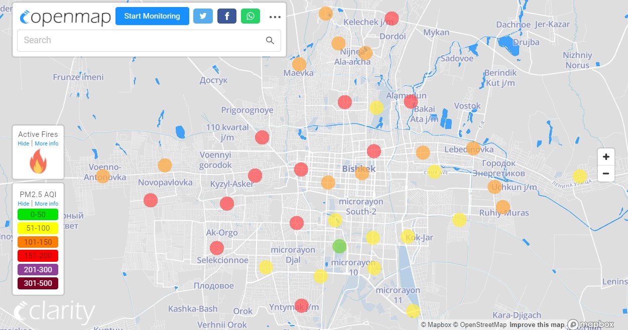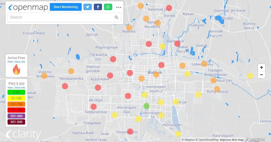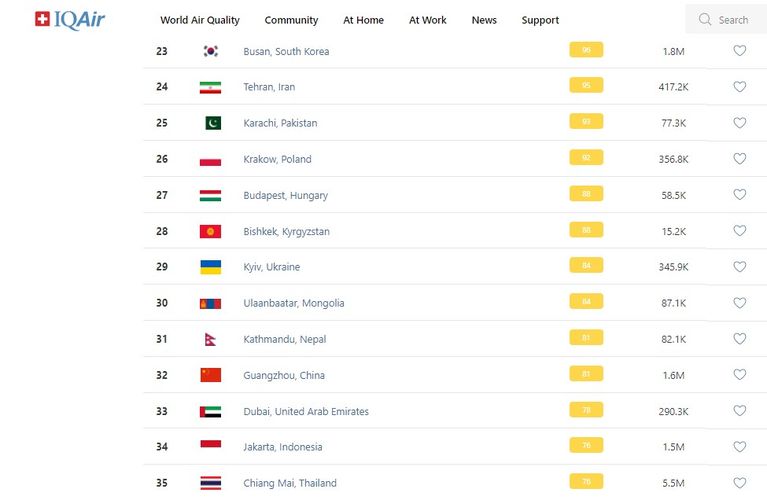 В рейтинге крупнейших городов мира по качеству воздуха World Air Quality Бишкек опустился на 28-е место.