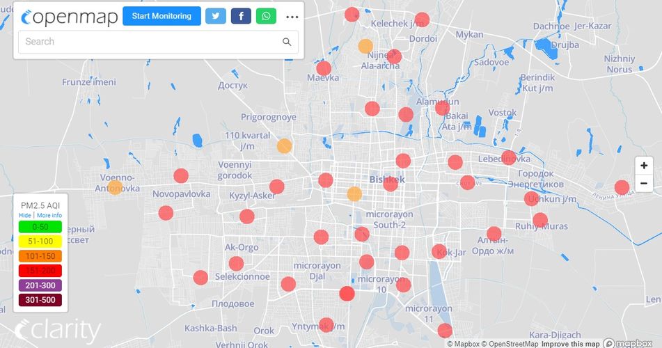В рейтинге крупнейших городов мира по качеству воздуха World Air Quality Бишкек поднялся на 1-е место.