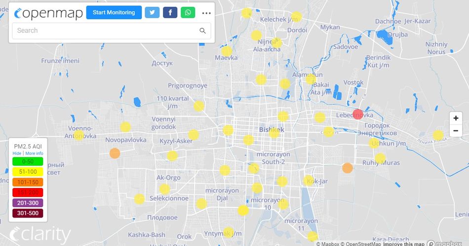 В рейтинге крупнейших городов мира по качеству воздуха World Air Quality Бишкек поднялся на 27-е место.