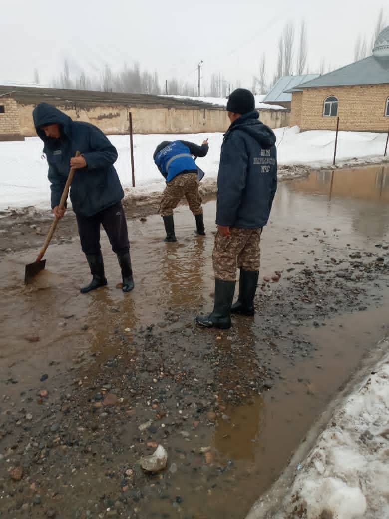 Отмечается, что 15 марта примерно в 11.00 из-за проливных дождей паводковые воды превысили края канала, в результате затопило дворы 74 жилых домов в селах Жаны-Базар, Курулуш и Кара-Ой Чаткальского района. В результате происшествия один жилой дом полностью затоплен.
