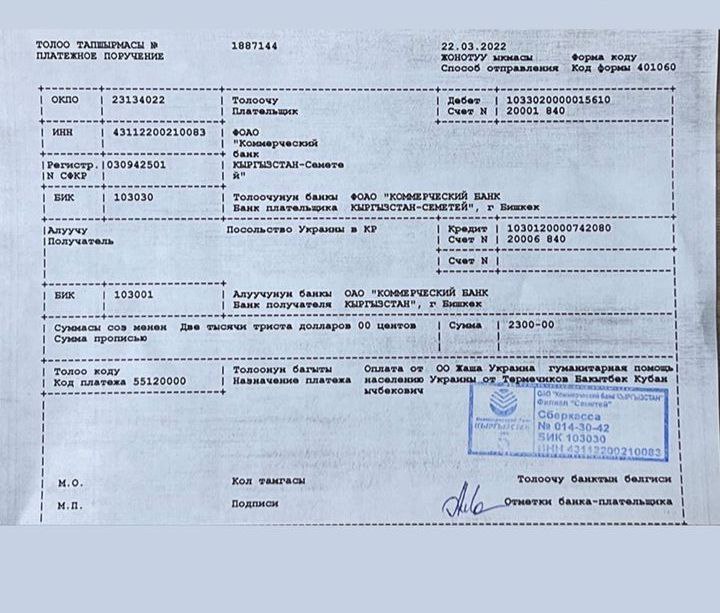 Кыргызстанцы собрали 230 тысяч сомов в качестве гумпомощи для Украины. Об этом 24-kg.com сообщил активист Жапар Усенов.