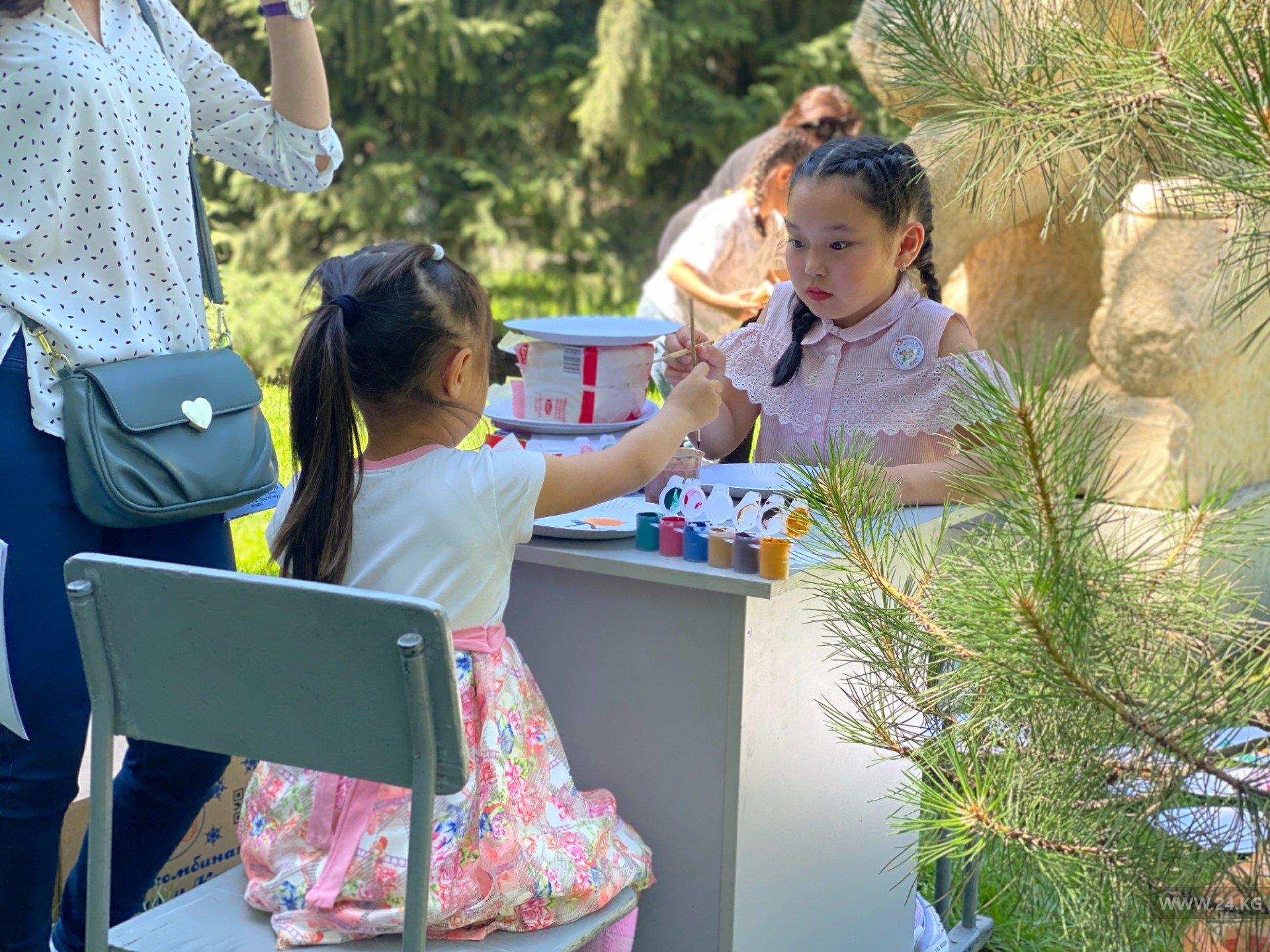 В это время в Дубовом парке имени Чингиза Айтматова свое веселье. Здесь установили творческие и интеллектуальные зоны для всех желающих, где можно играть в настольные игры, мастерить подделки, знакомиться с художниками и рисовать самим.