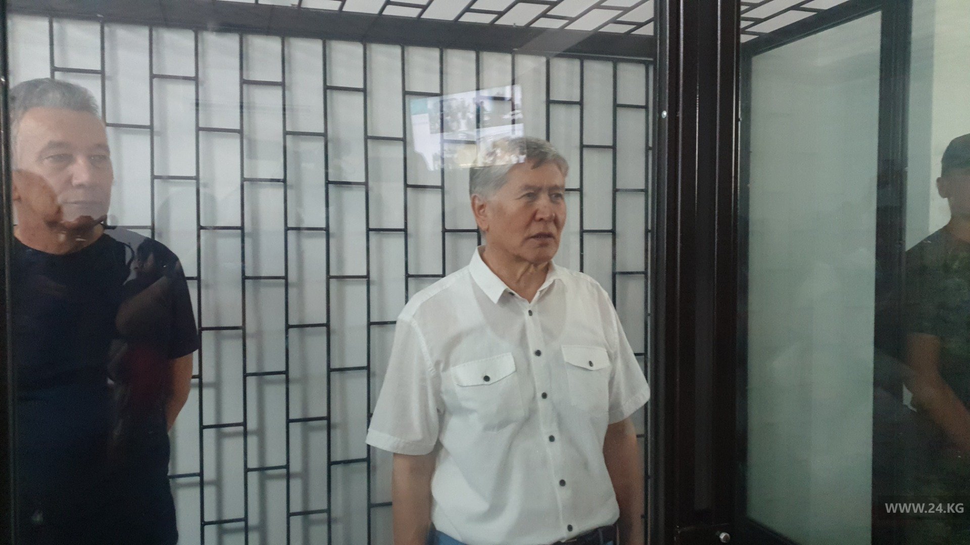 Прокурор заявил, что участие обвиняемого необходимо в суде. После этого Алмазбек Атамбаев стал пинать перегородку помещения для подсудимых. Его вывели из зала суда за нарушение порядка.