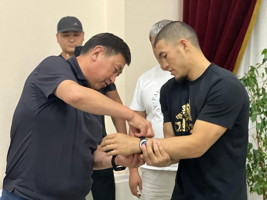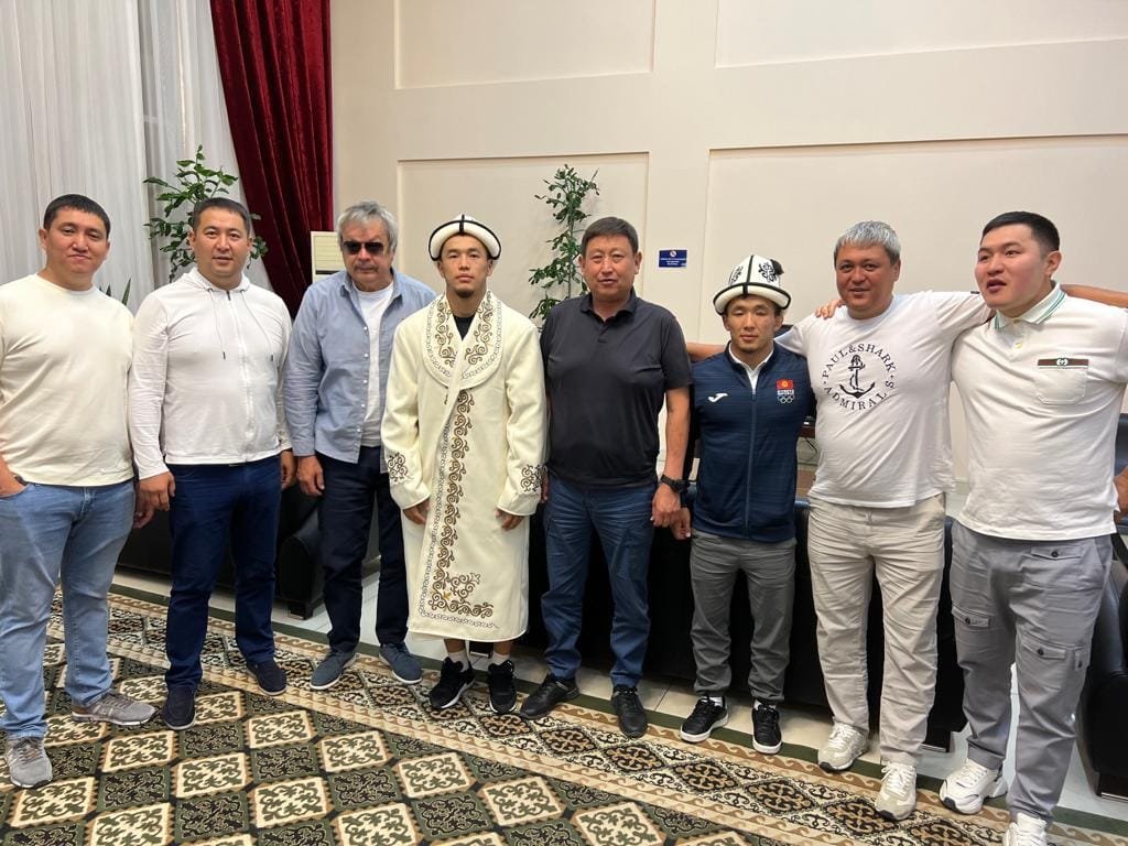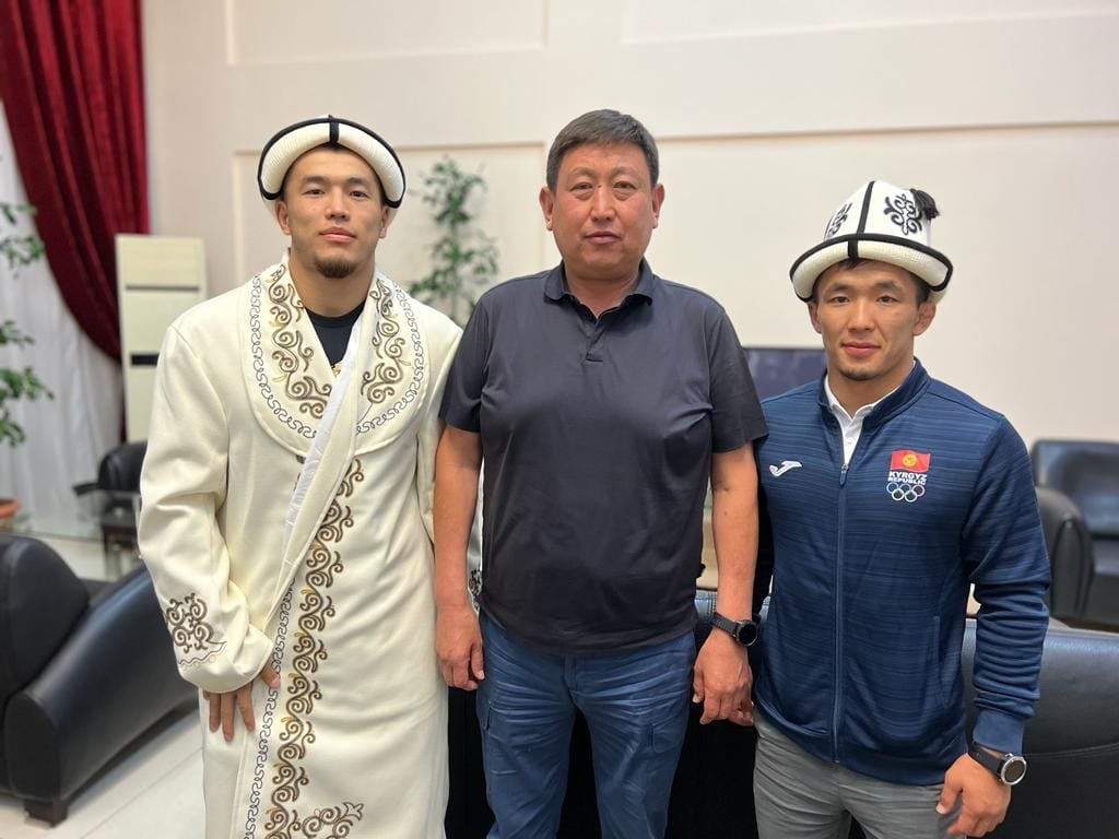 Акылбек Тумонбаев выразил благодарность спортсменам за хорошие результаты и подарил обладателям золотых медалей Акжолу Махмудову и Жоламану Шаршенбекову наручные часы, а также передал денежное вознаграждение команде.