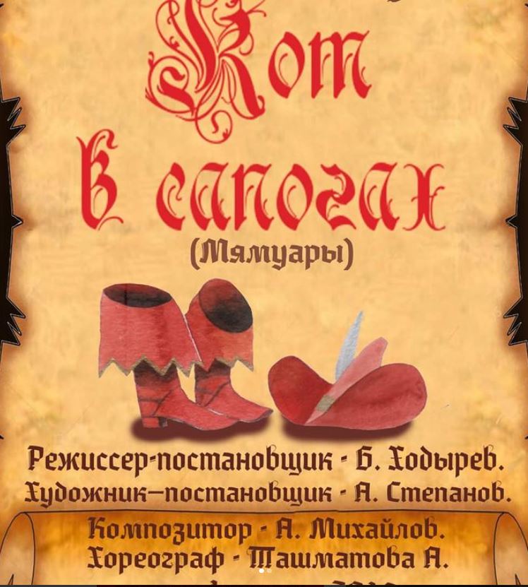 Спектакль «Кот в сапогах» по знаменитой сказке Шарля Перро о хитроумном коте и его непутевом хозяине. Веселая, яркая, динамичная, музыкальная постановка с интерактивными элементами.