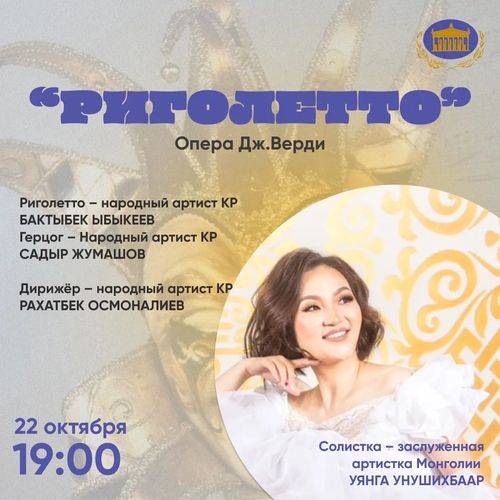 Спектакль в четырех действиях с участием солистки оперы Монголии Уянги Унушихбаар. Дирижер — народный артист КР Рахатбек Осмоналиев.