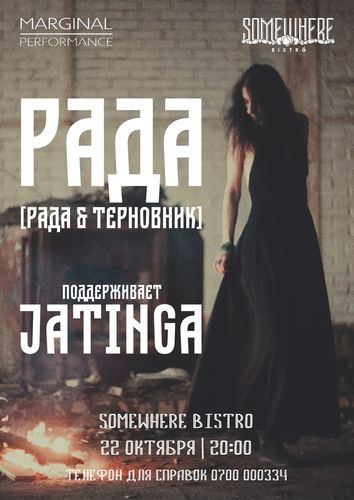 Бессменная вокалистка и лидер группы «Рада & Терновник», созданной в 1991 году и играющей на стыке психоделического рока, джаза, фолка и трип-хопа. Откроет вечер бишкекская пост-инди-рок-группа Jatinga.