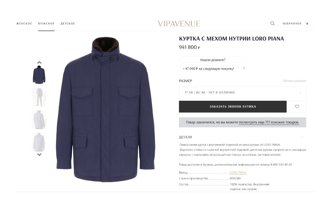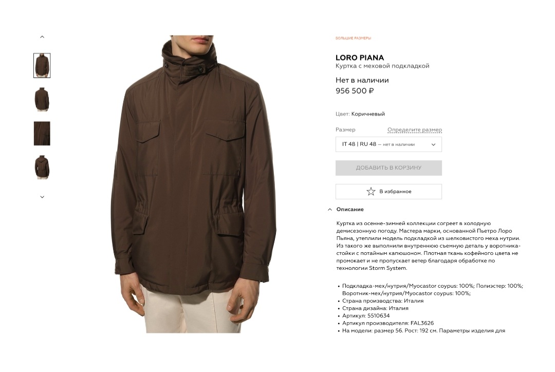 На сайте московского ЦУМа эта куртка в коричневом цвете стоит 1 миллион 283 тысячи сомов, или $15,5 тысячи.