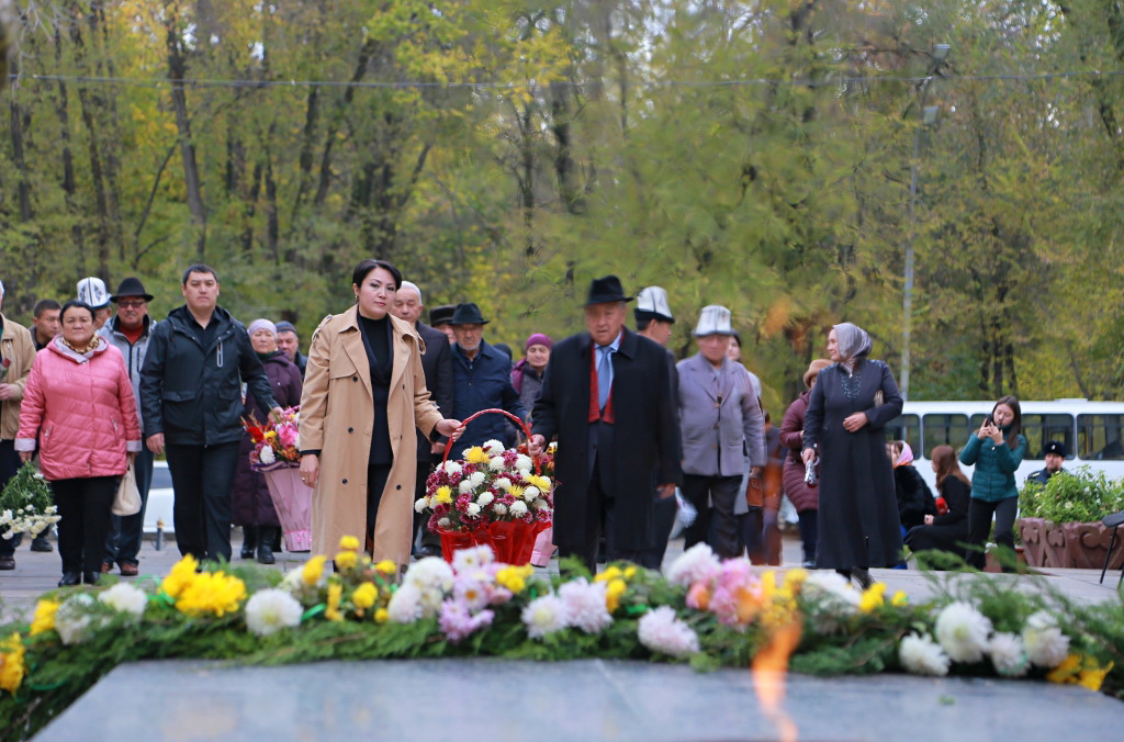 По ее данным, торжественные мероприятия прошли возле мемориального комплекса «Вечный огонь», у памятников Абдыкадыру Орозбекову, Алымбеку датка, Султану Ибраимову, Исхаку Раззакову, Абсамату Масалиеву, Ысакбеку Монуеву, Курманджан датке.