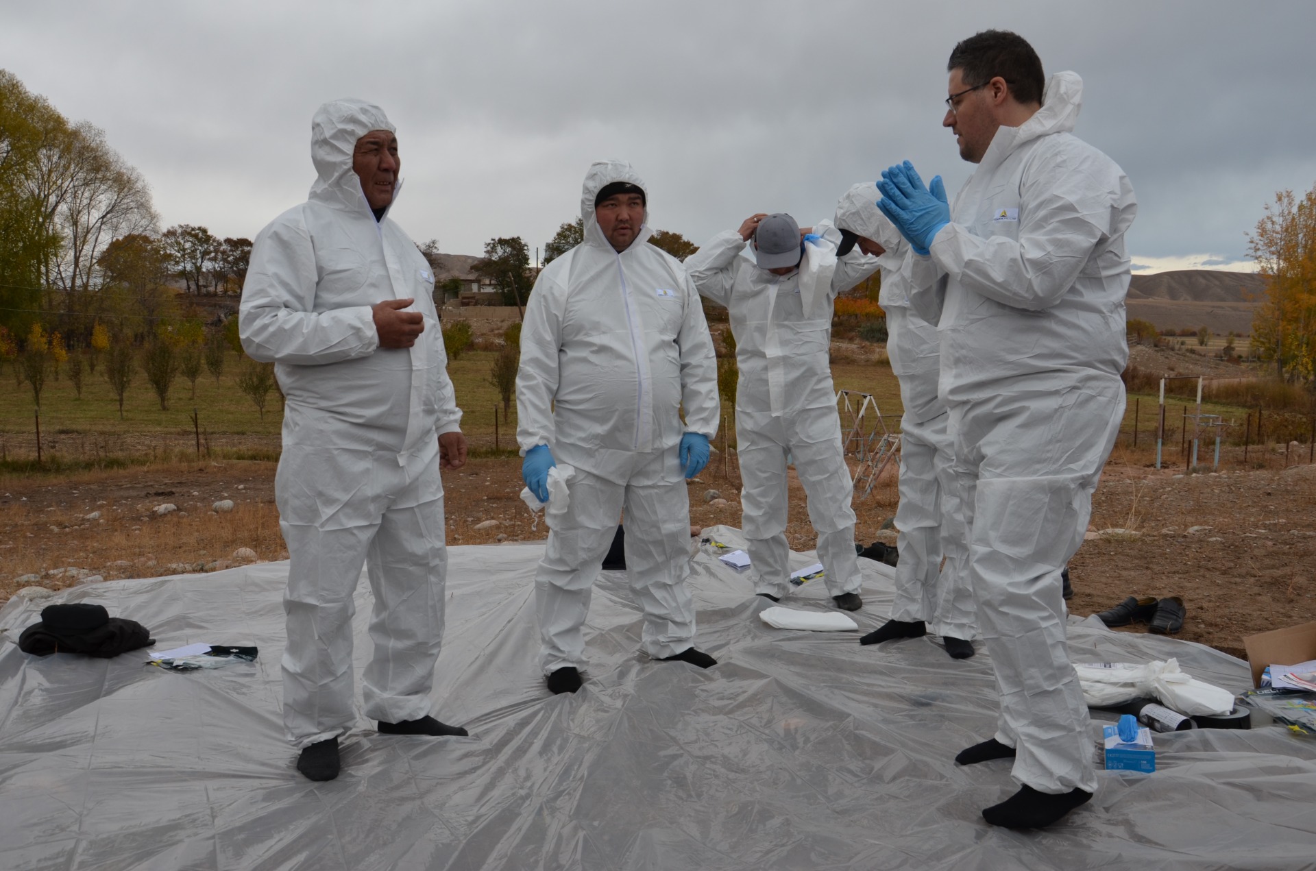 «В первый день был организован выезд на место возможного «заражения»: посещение фермы. Целью полевых учений была отработка процедур в случае подозрения на появление болезни, в том числе процедур биозащиты входов и выходов, клинических и патологических исследований, а также отбора проб и проведения эпидемиологических расследований — всего того, что происходит в условиях реальной чрезвычайной ситуации.