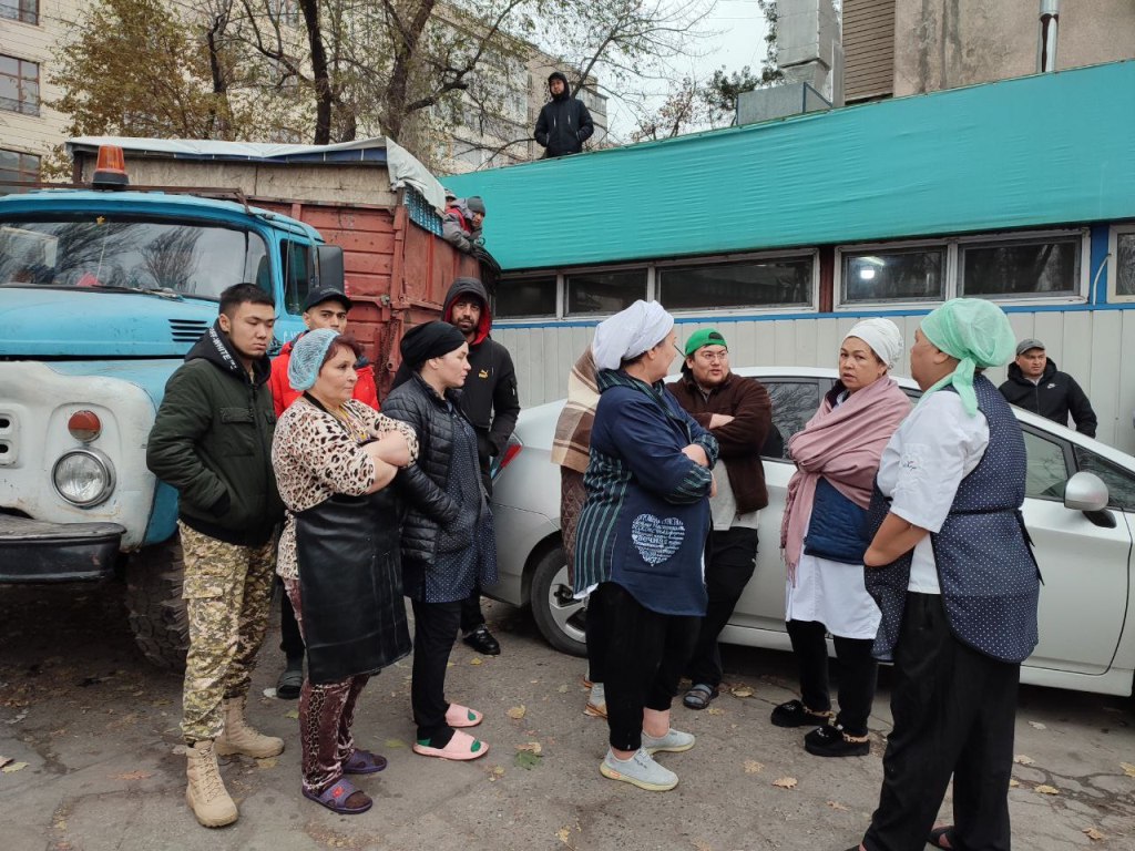 В Бишкеке департамент управления муниципальным имуществом мэрии столицы пытается снести пристройку кулинарии «Дасторкон», расположенную на пересечении проспекта Чуй и улицы 7 Апреля. Для этих целей на место приехала спецтехника «Тазалыка».