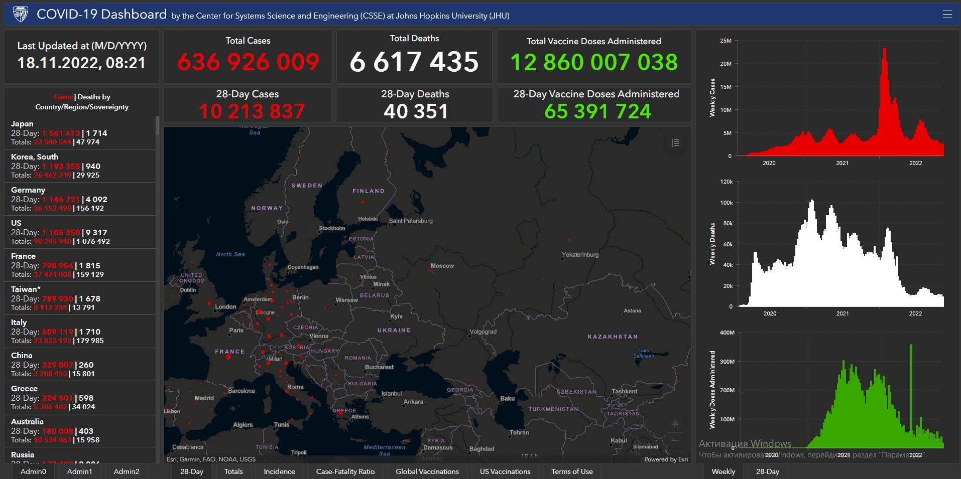 COVID-19 в мире. Заразились более 636,9 миллиона, умерли более 6,6 миллиона