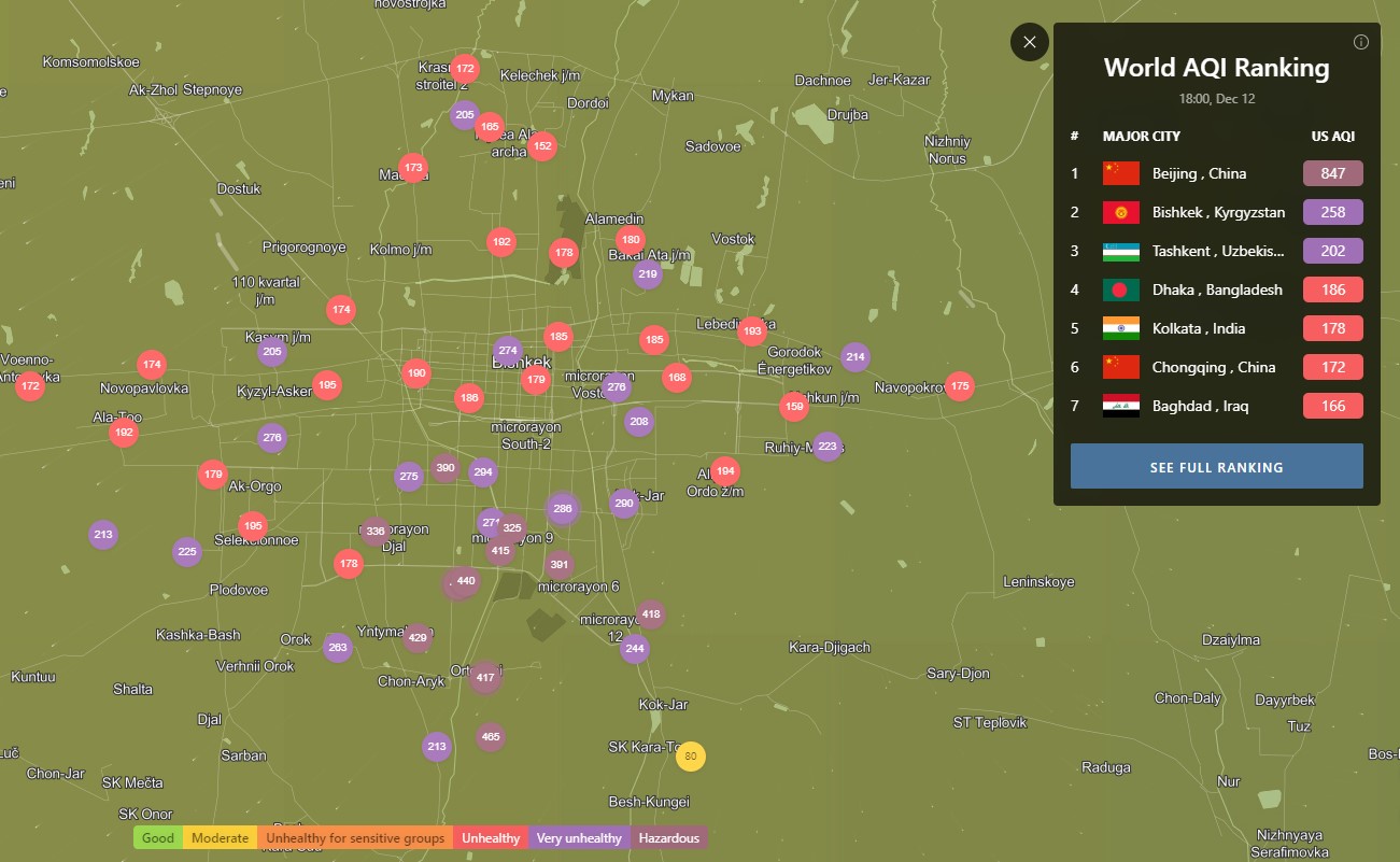 Загрязнение воздуха в Бишкеке. Столица в тройке лидеров