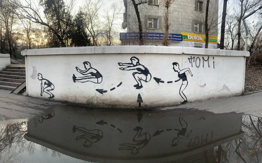 Фото Facebook/Peshcom. Арт-интервенция на мосту на улице Абдрахманова