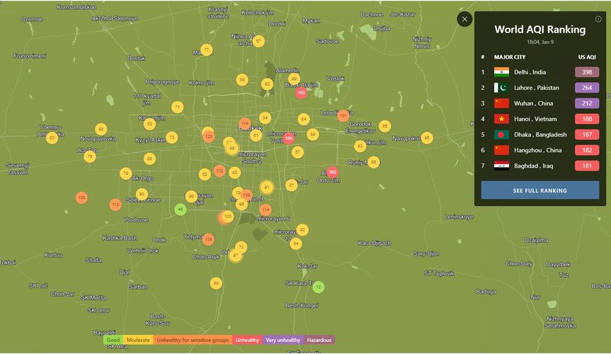 В 18.00 статус города отмечен как «умеренный». Индекс качества воздуха, по данным сайта, составляет 92 (AQI).