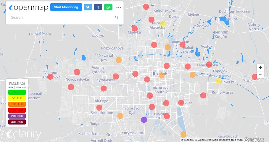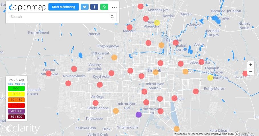 Загрязнение воздуха в Бишкеке. Столица оказалась в первой десятке