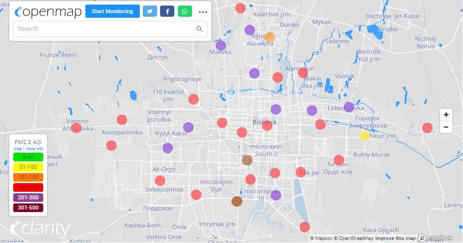 В рейтинге крупнейших городов мира по качеству воздуха World Air Quality Бишкек находится на 2-м месте.