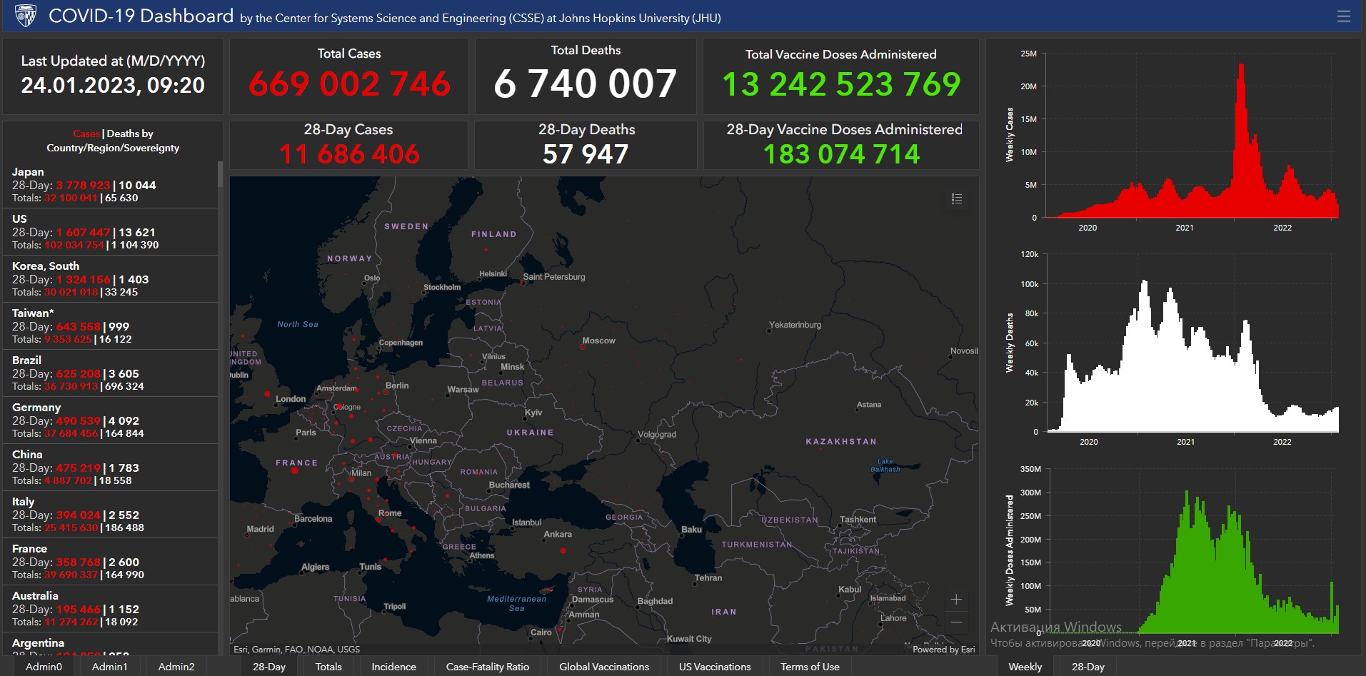COVID-19 в мире. Заразились более 669 миллионов, умерли более 6,7 миллиона