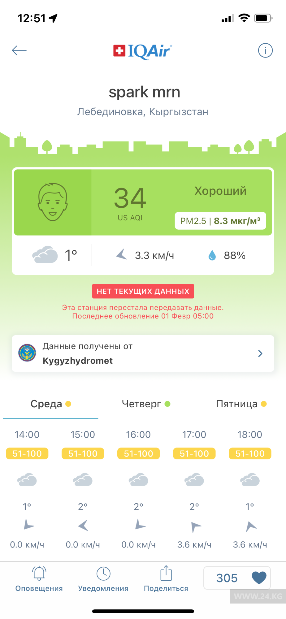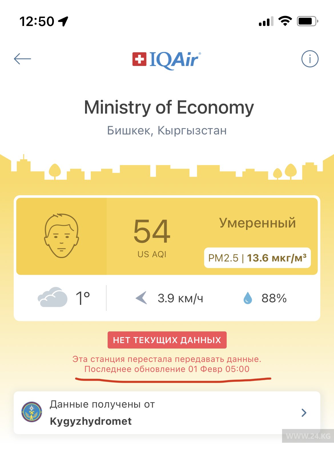 Стоит отметить, что большинство датчиков в Бишкеке перестали работать и отображать данные, они отключены накануне — 1 февраля в 5.00.