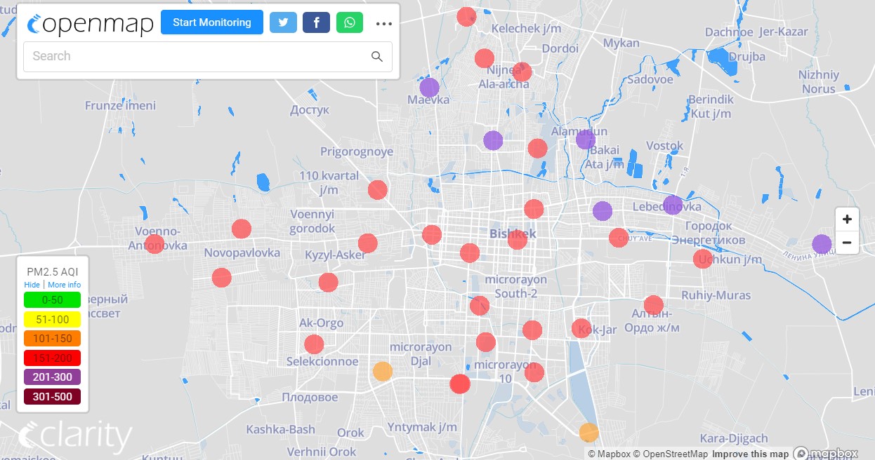 В рейтинге крупнейших городов мира по качеству воздуха World Air Quality Бишкек поднялся на 4-е место.