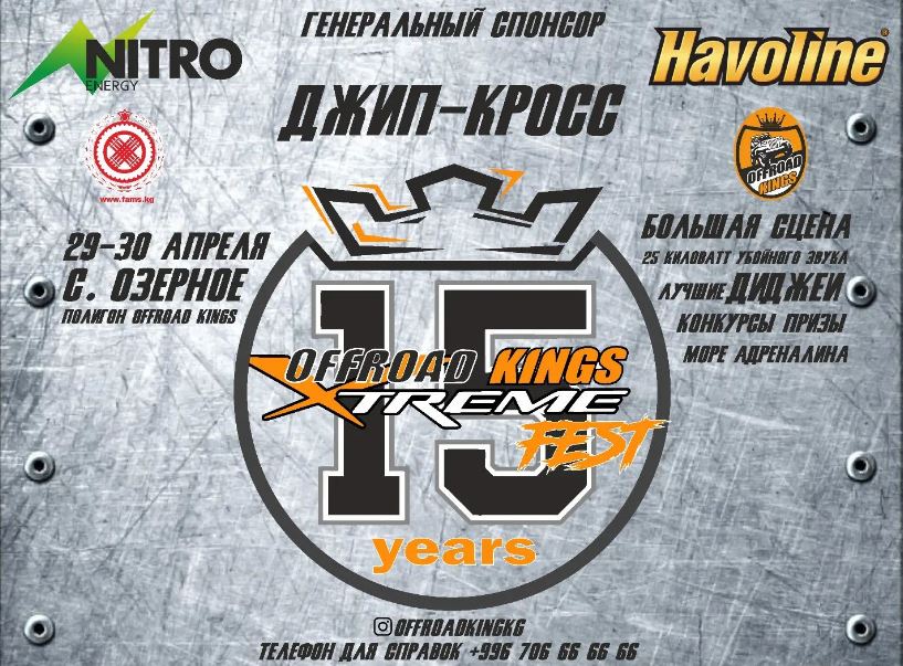 Крутые эндуро мотоциклы и квадроциклы, невероятные багги, внедорожники и монстртраки. Участники из Кыргызстана, Казахстана, России и Узбекистана. 25 киловатт звука, много призов и конкурсов.