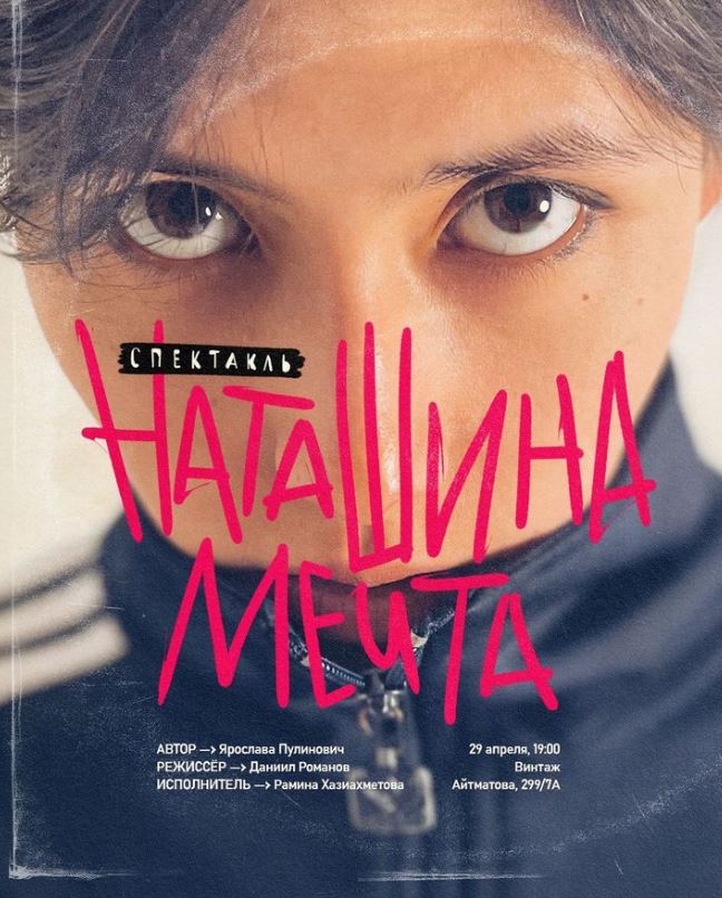Моноспектакль подготовили автор — Ярослава Пулинович, режиссер — Даниил Романов, актриса — Рамина Хазиахметова. Бронь билетов по телефону 0990031185.
