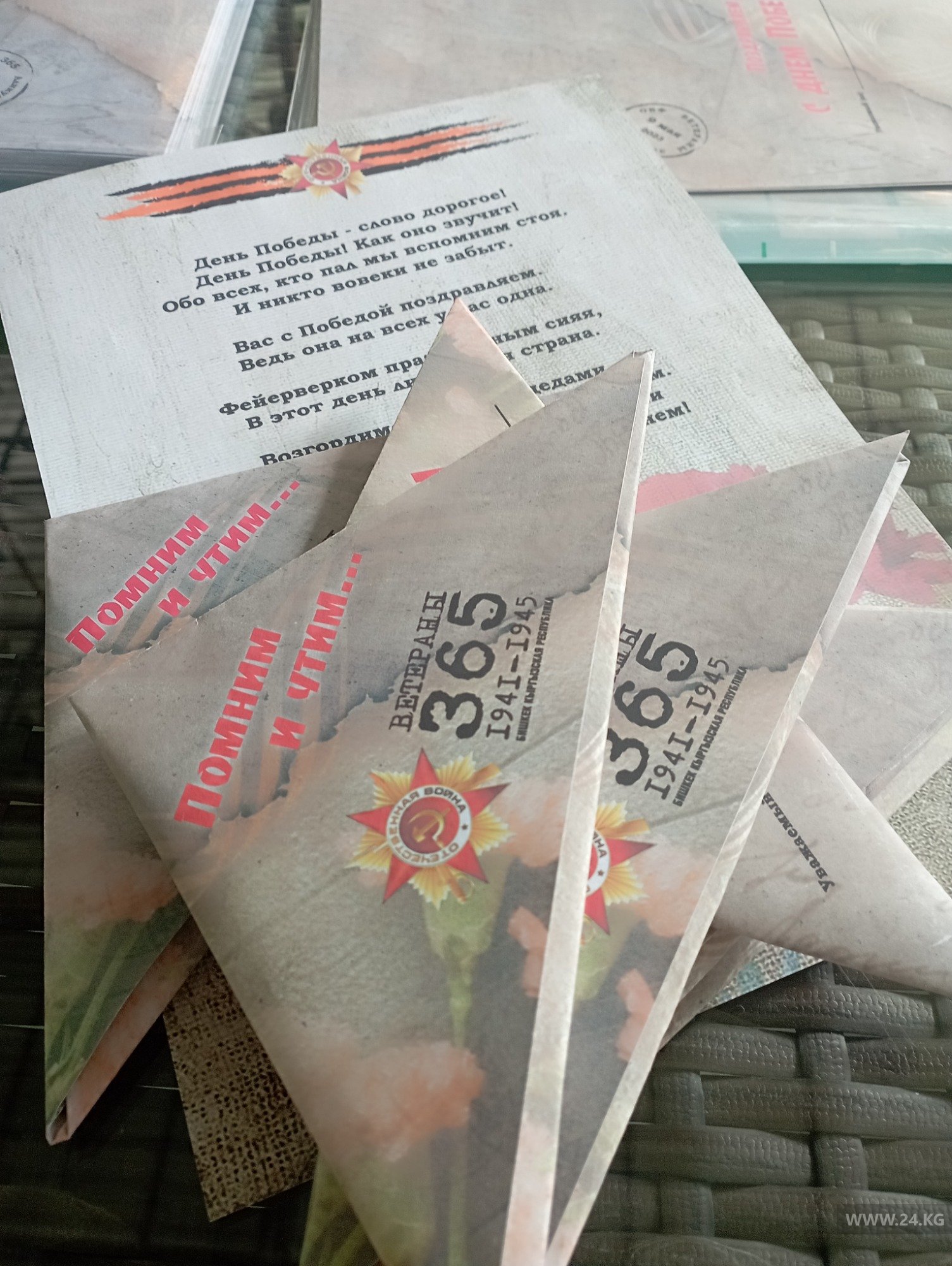 В Бишкеке в День Победы волонтеры фонда «Ветераны 365», горожане поздравляют ветеранов, тружеников тыла, узников концлагерей, вдов. В списке более 130 фамилий.