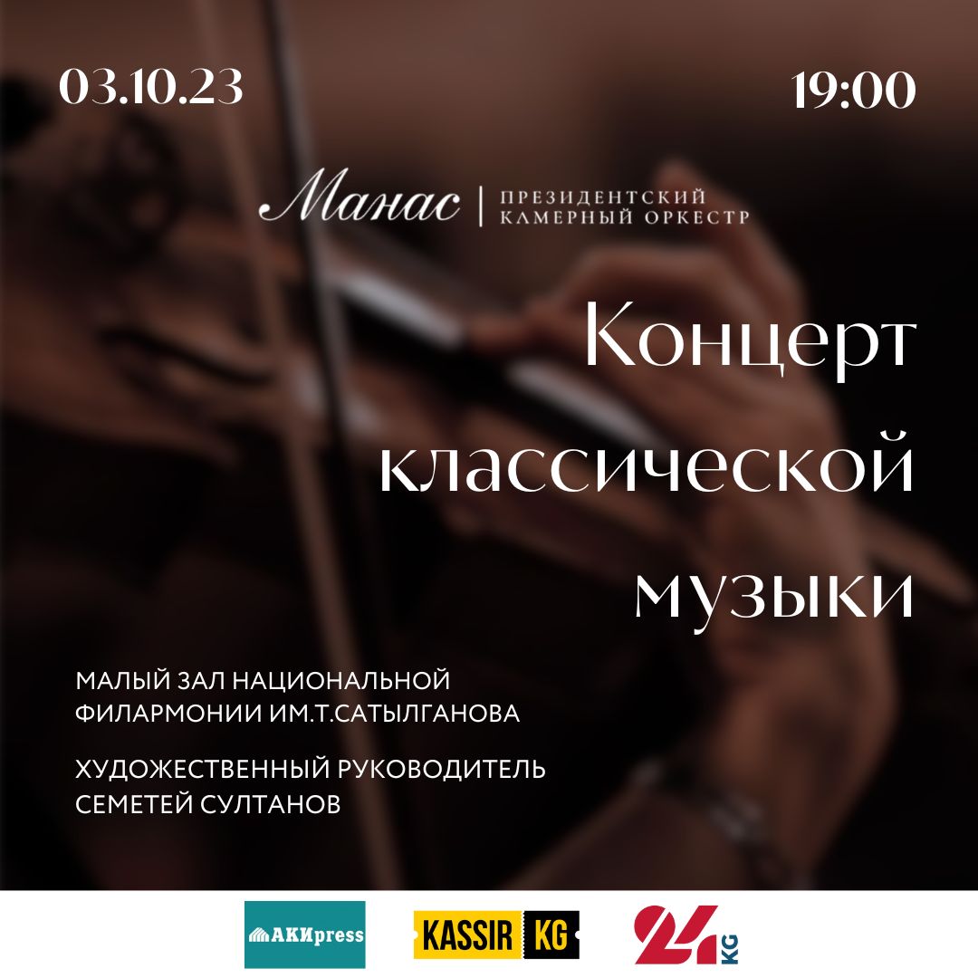 Президентский камерный оркестр «Манас» приглашает на концерт классической музыки.
