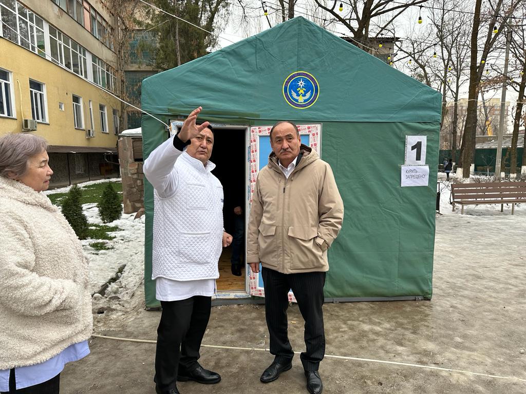 В ведомстве отметили, что по поручению Алымкадыра Бейшеналиева в Городской детской больнице скорой медицинской помощи установлены восемь мобильных госпиталей для регулирования потока пациентов и создания условий для родителей болеющих детей. Как объяснили в ведомстве, в палатках тепло, в них установлены кресла.