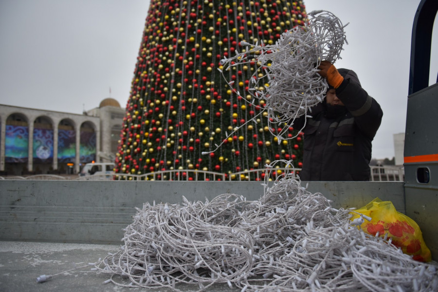 На центральной площади Ала-Тоо начинается демонтаж главной елки страны, а также всех конструкций и элементов новогоднего оформления. Об этом сообщила пресс-служба мэрии.