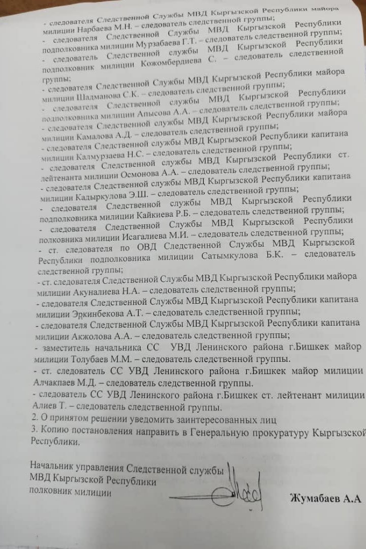 По факту возбуждено уголовное дело по статье 278 части 3 УК КР, а также начаты следственные мероприятия. Постановление подготовил следователь Кубанбек Байышов.
