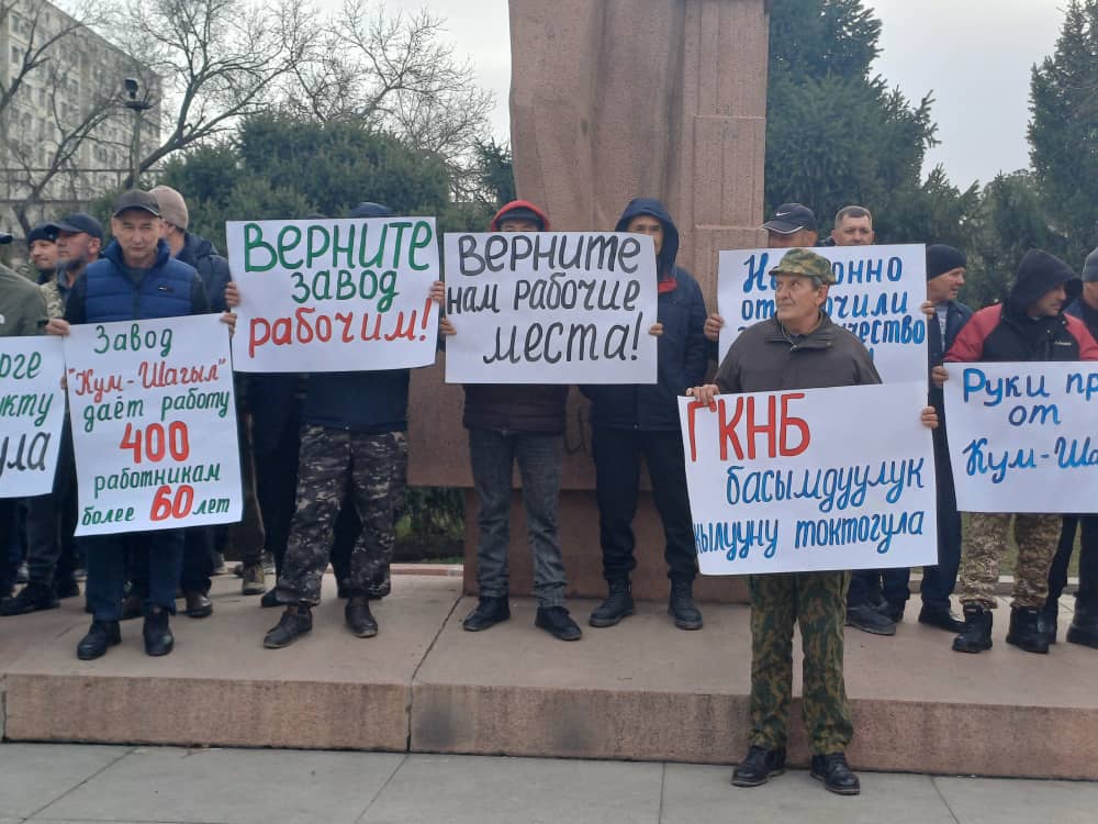 Участники акции протеста просят объяснить им ситуацию вокруг завода и дать возможность работать.