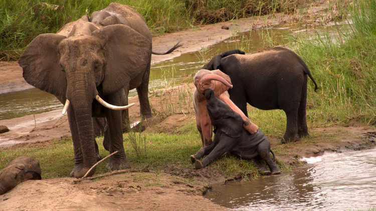 «В обоих недавних наблюдениях двух разных слонят остальная часть стада, казалось, была очень заботливой и терпеливой в присутствии этих молодых особей», — сказал Потгитер.