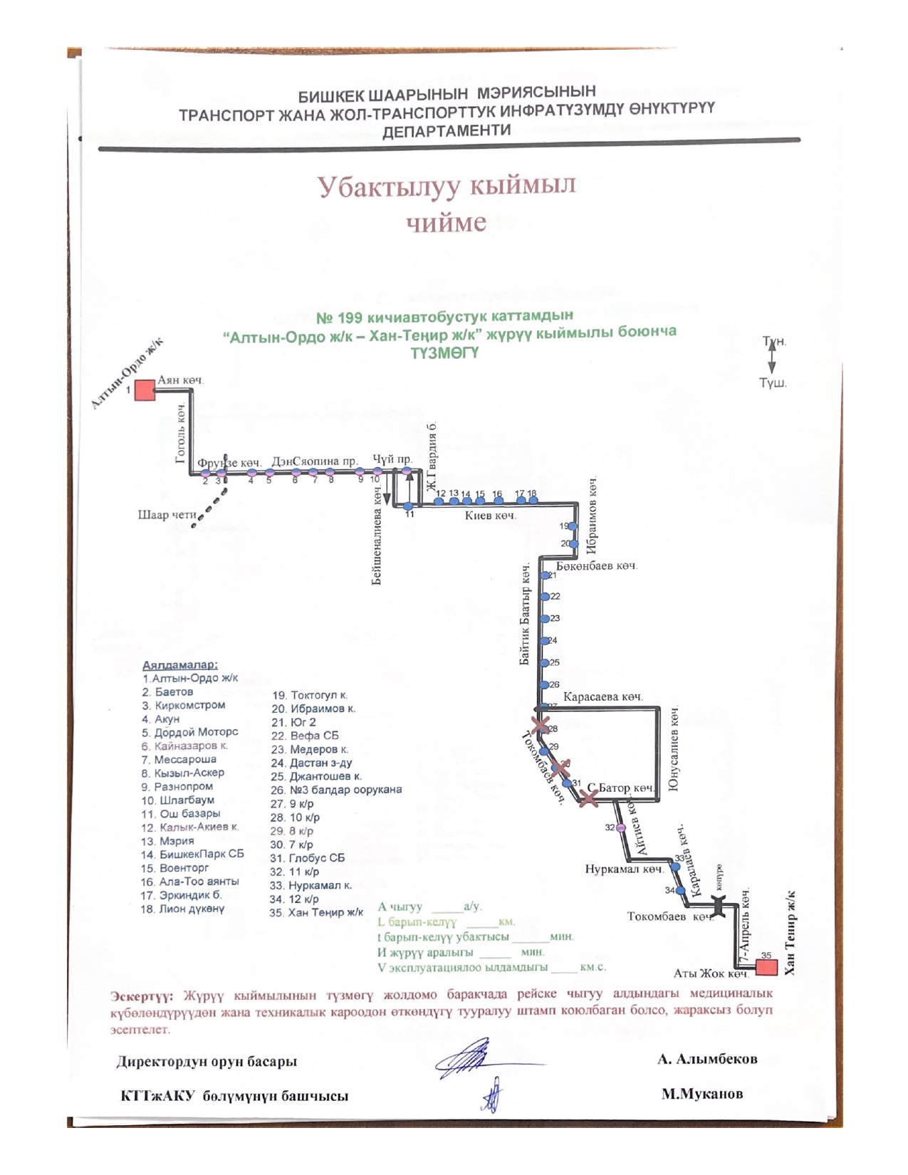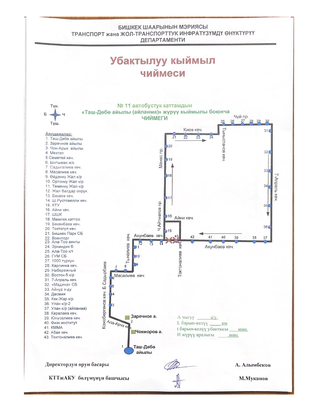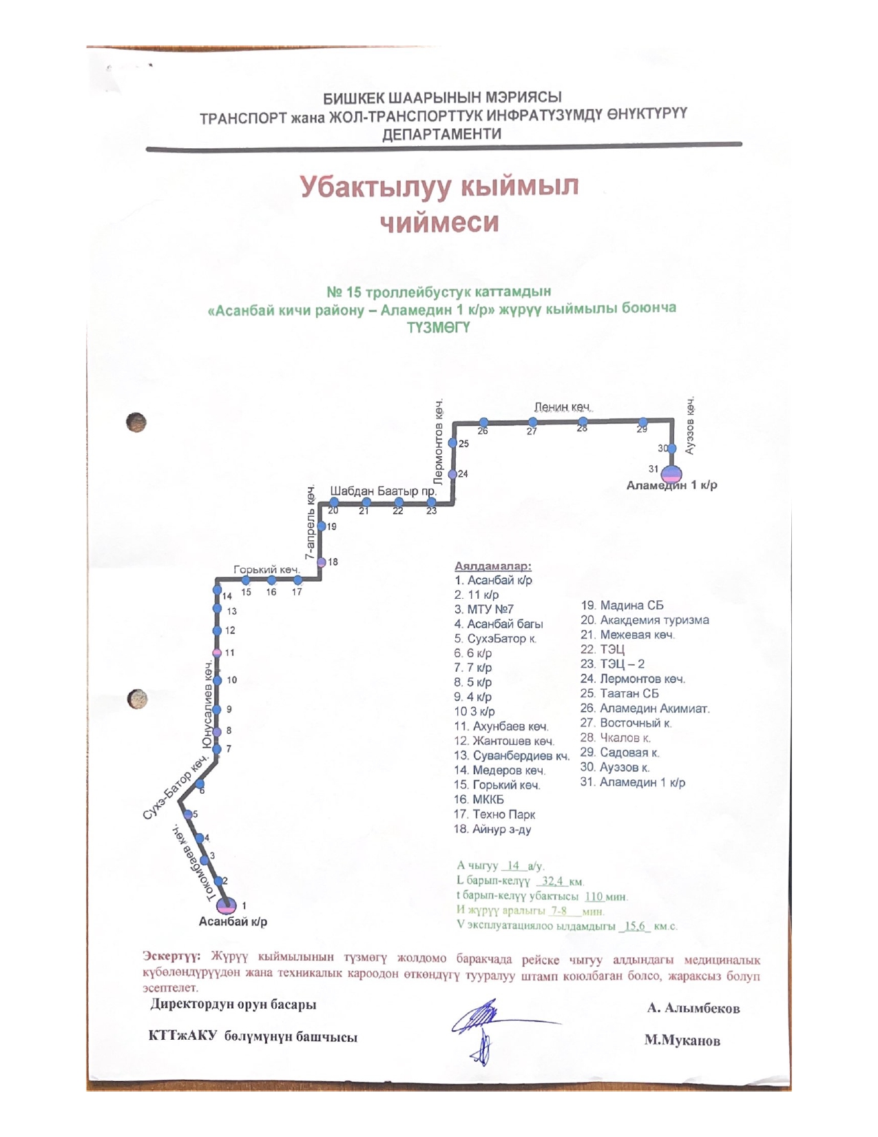 № 15 — от микрорайона «Асанбай» до микрорайона «Аламедин-1».