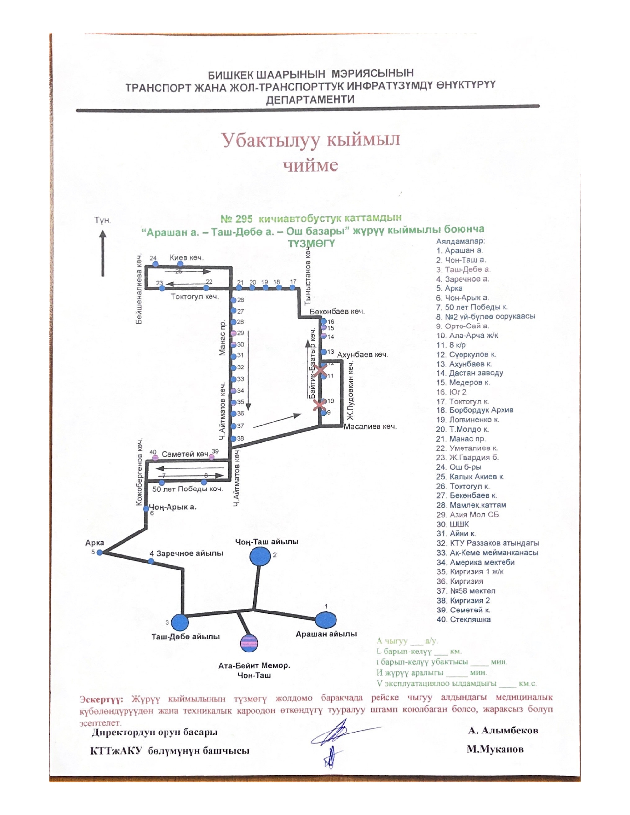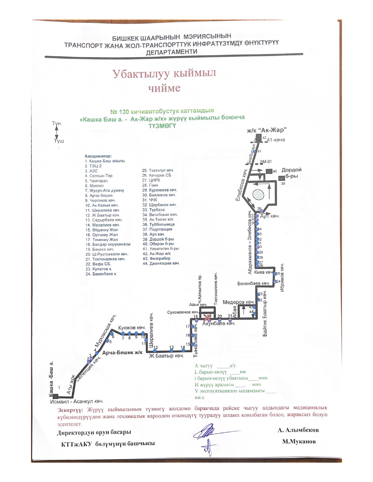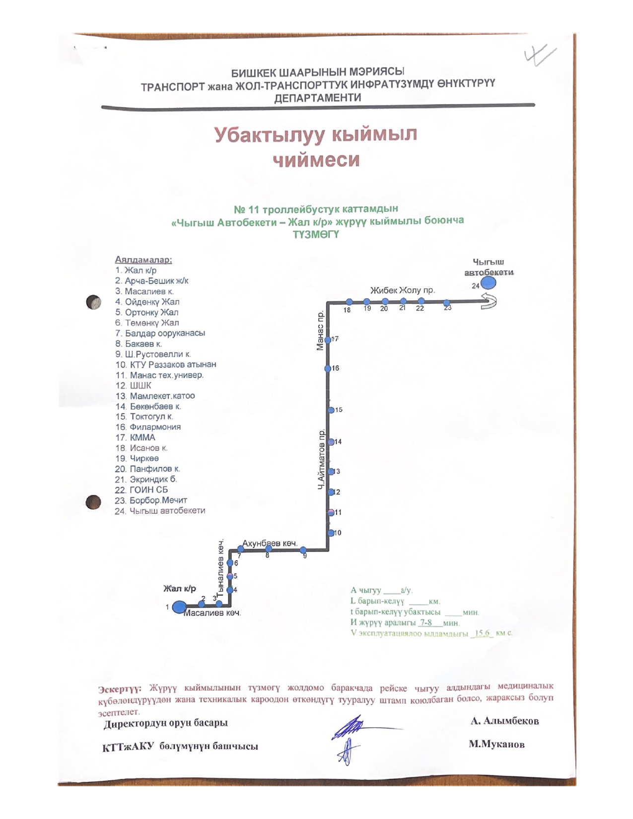 № 15 — от микрорайона «Асанбай» до микрорайона «Аламедин-1».