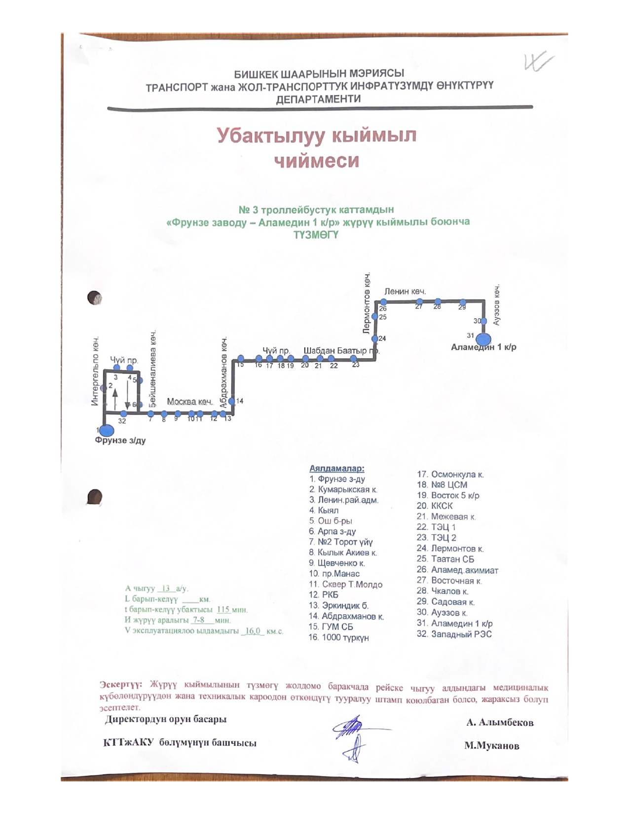 № 3 — от завода имени Фрунзе до микрорайона «Аламедин-1»;